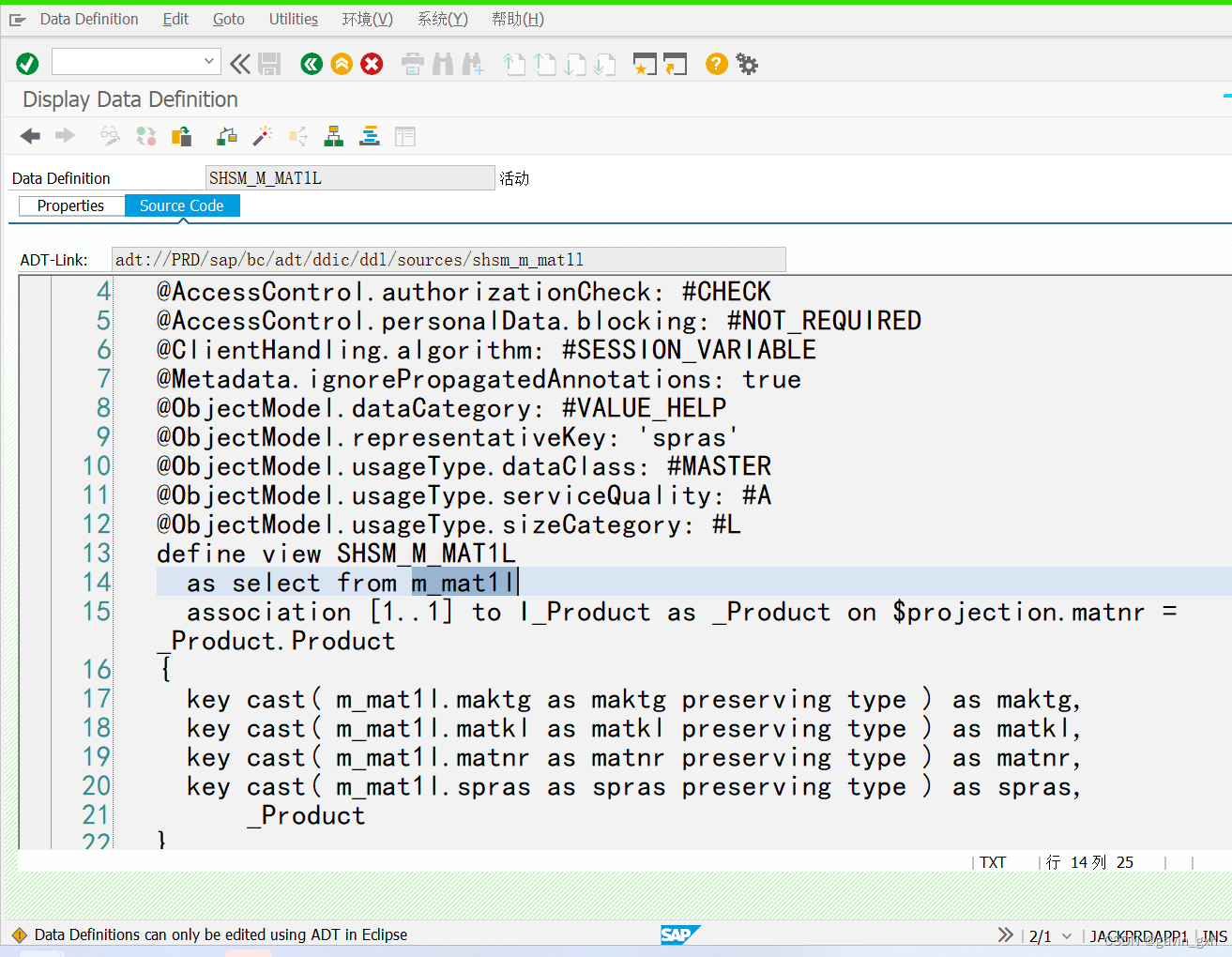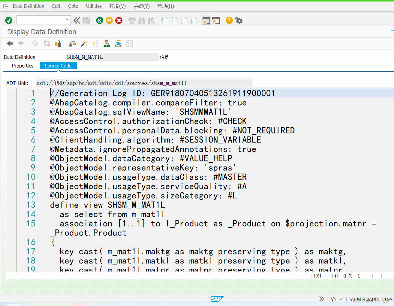 新增一行并激活,然后到SAP中查看