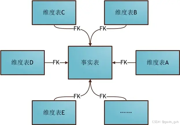 星型模型架构是一种非正规化的结构,特点是有一张事实表,多张维度表,是不存在渐变维度的,事实表和维度表通过主外键相关联,维度表之间是没有关联,因为维度表的数据冗余,所以统计查询时不需要做过多外部连接。