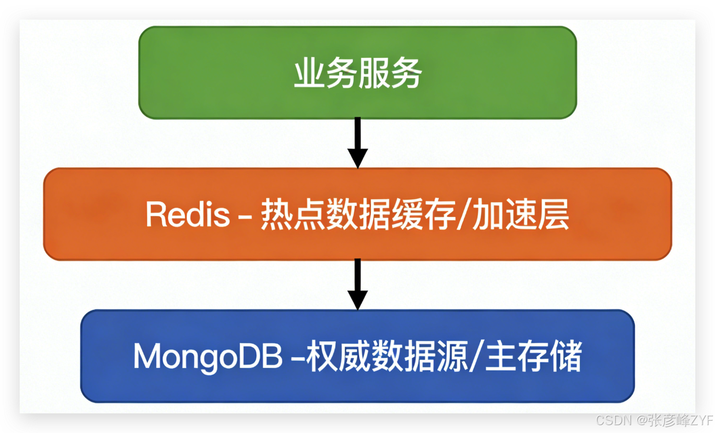 五、推荐架构:MongoDB 主存储 + Redis 分层缓存