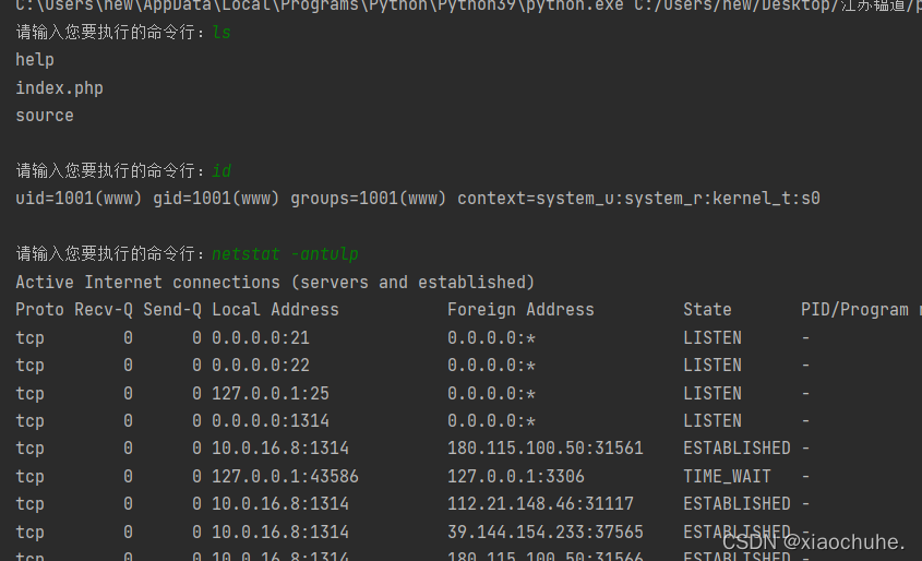 cmd = input("请输入您要执行的命令行:").strip()
