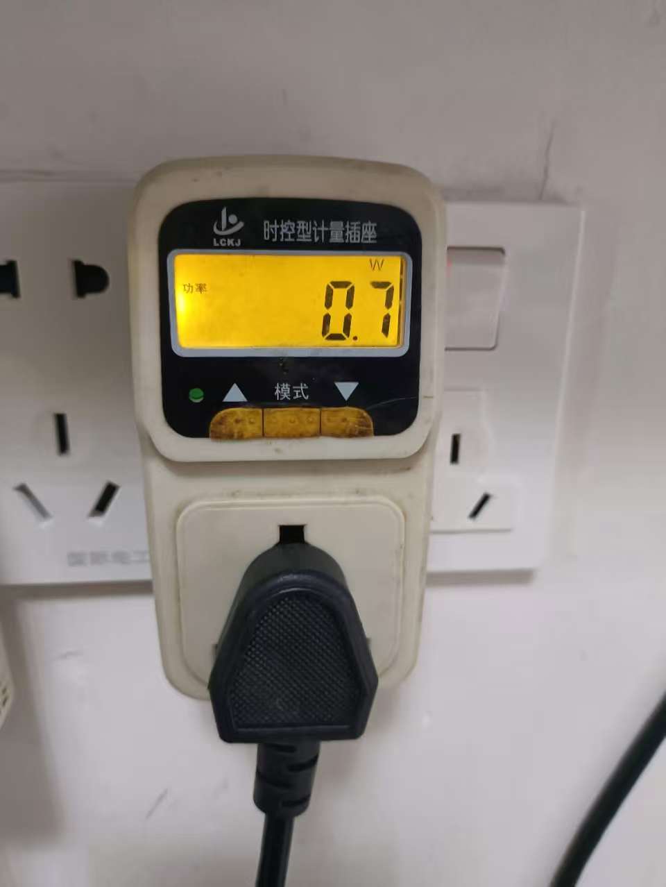 先测试一下不开机,默认插上12V3A的电源的功率,待机功率只有0.7W,真是小!