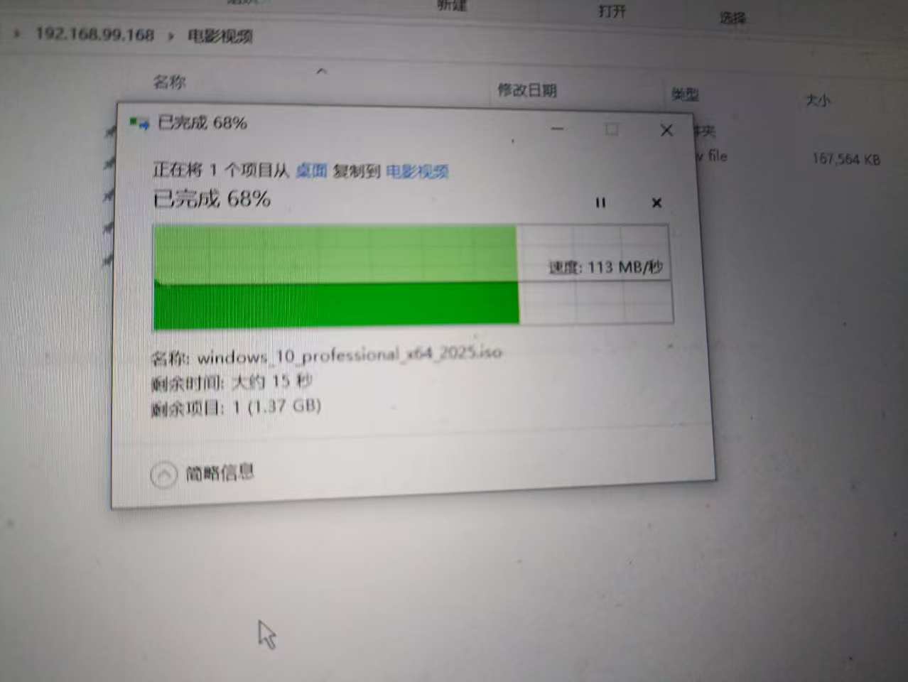 顺便测试一下自带千兆网卡复制硬盘的速度(从笔记本的千兆网复制到NAS),速度如下