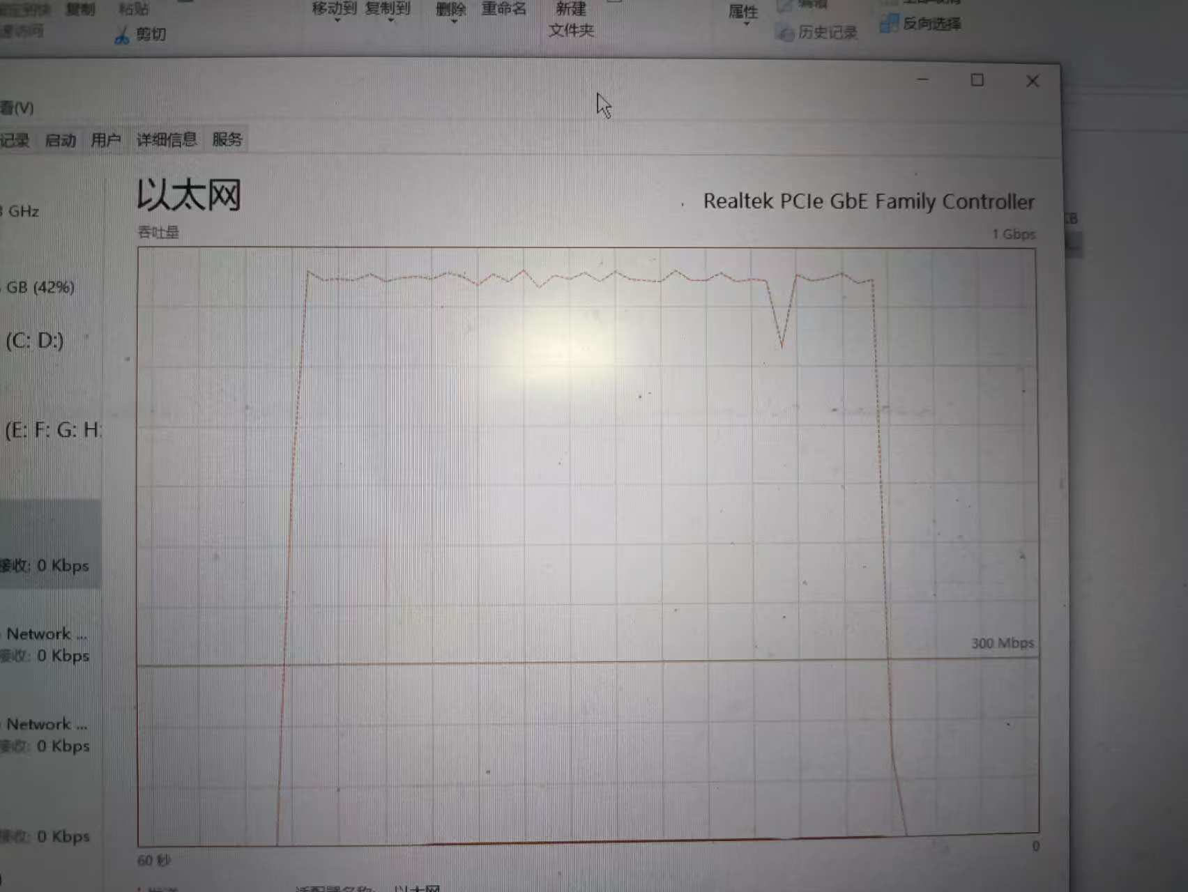 笔记本网卡利用率如下:这个MINIPCIE的速度只有PCIE x1 ,对于千兆网卡来说,完全可以跑满带宽了。我这个NVME固态的速度是PCIE X4的,只能先这样浪费着用了。以后N150主机便宜的了,再换到N150上,哈哈!