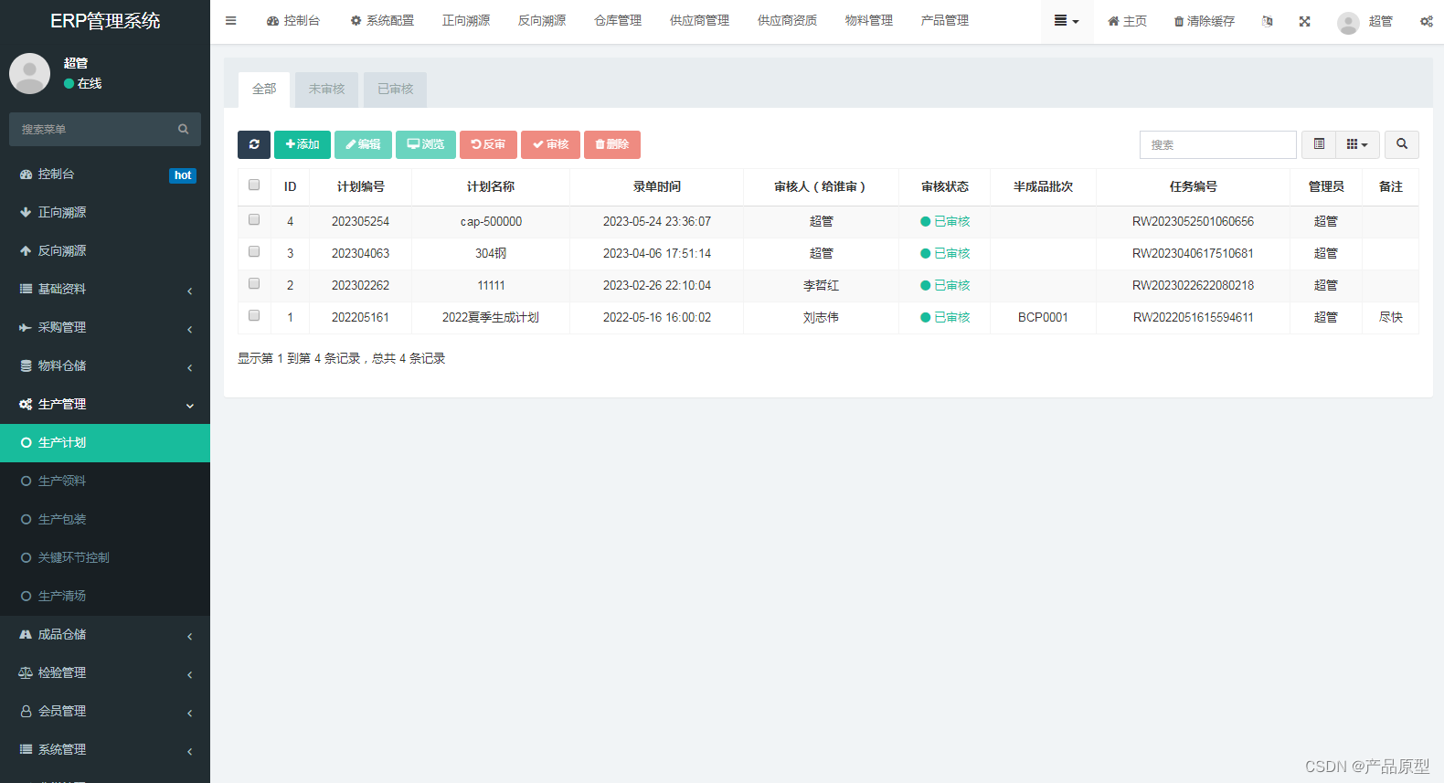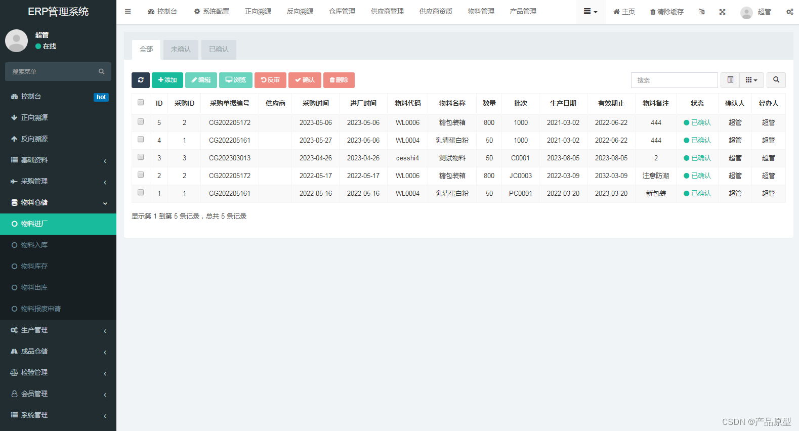 基础管理:仓库管理、产品系列、供应商管理、供应商资质、物料管理、客户管理、配方管理、生产线管理等