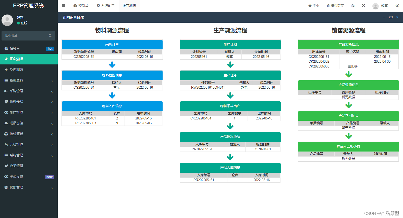 检验管理:物料进厂检验、物料厂家报告、物料在库抽检、成品入库检验、成品在库抽检、不合格产品、产品找回等