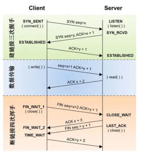 具体过程即是:送端发送数据时,生成一个随机 seq=x,然后每一片按照数据大小分配 seq。数据到达接收端后接收端放入缓存,并发送一个 ack=x 的包,表示对方已经收到了数据。发送端收到了 ack 包后,删除缓冲区对应的数据。时间到后,定时任务检查是否需要重传数据