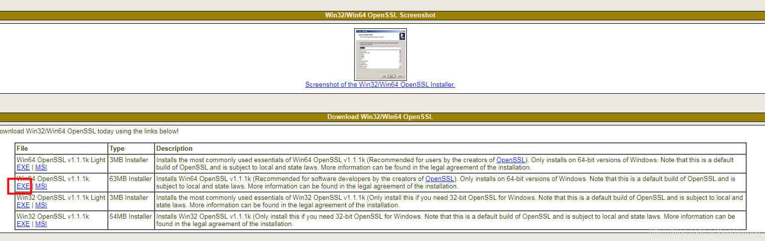 下载地址:https://slproweb.com/products/Win32OpenSSL.html