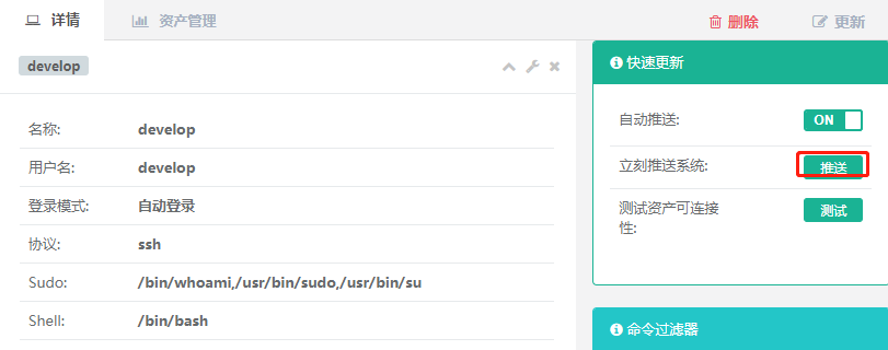 点击资产管理-->系统用户,点击推送