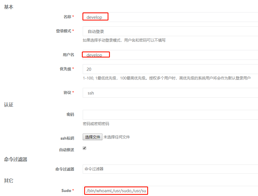 输入基本信息,如果ssh端口不是22,请更改。