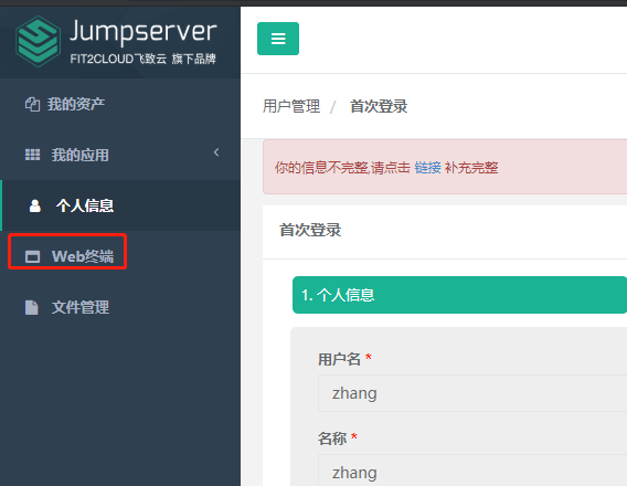 登录zhang用户,点击web终端