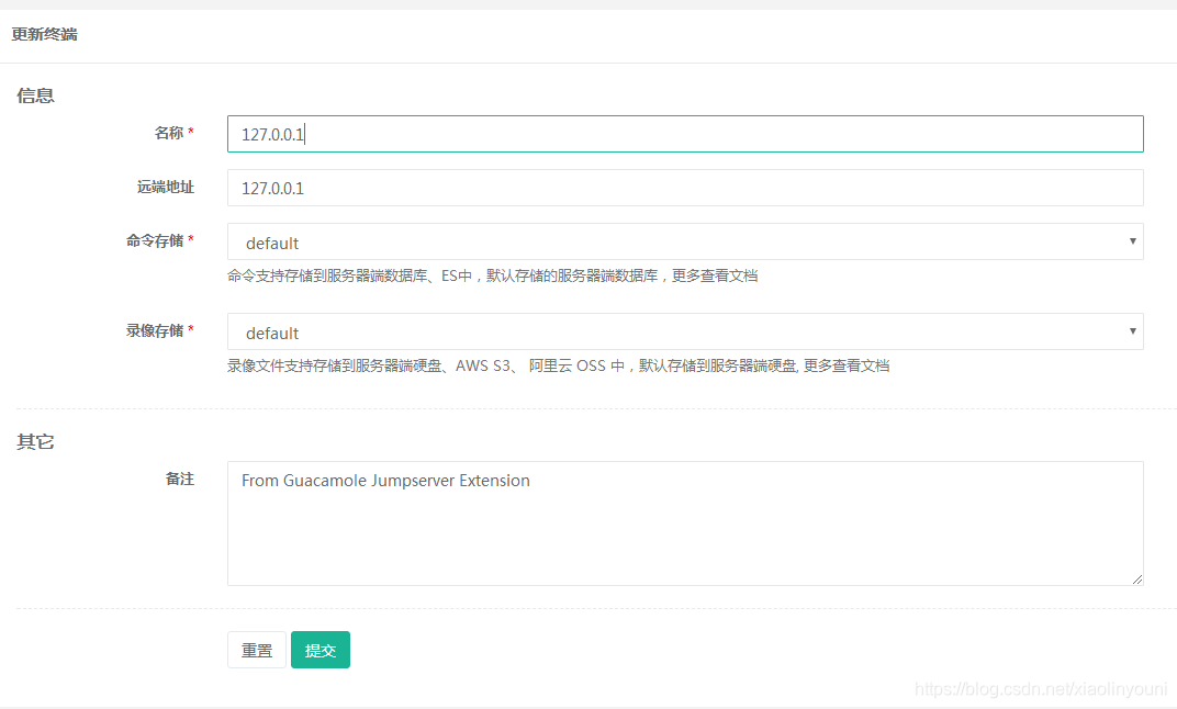在会话管理-终端管理直接修改[Gua]jumpserver成127.0.0.1