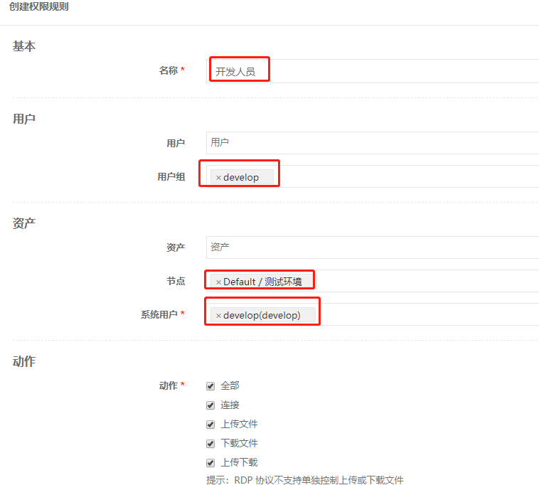点击创建权限规则