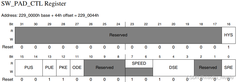 IOMUXC_SNVS_SW_PAD_CTL_PAD_BOOT_MODE0:PAD代表配置BOOT_MODE0的电气特性的。