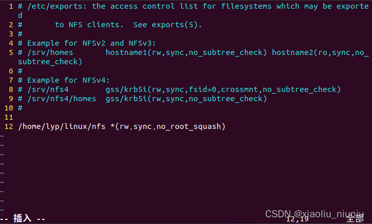 /home/lyp/linux/nfs *(rw,sync,no_root_squash)