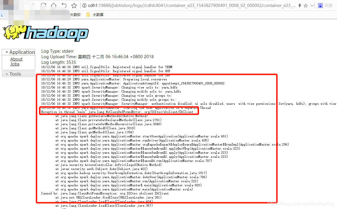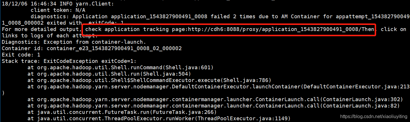 去http://cdh6:8088/proxy/application_1543827900491_0008/Then 查看日志 如下图