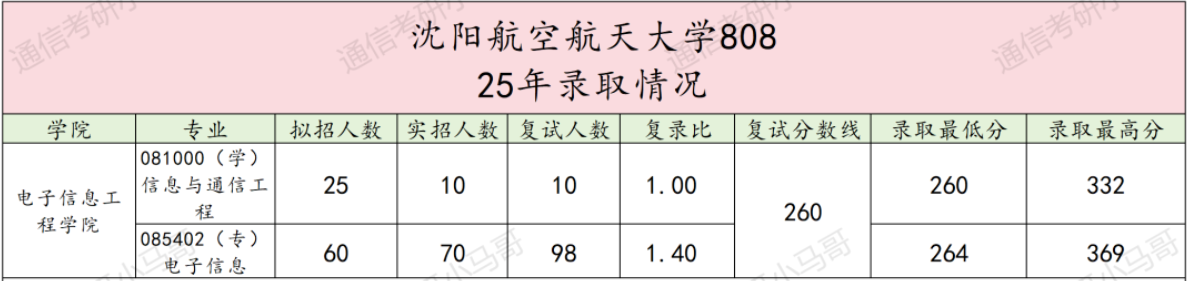 25年招生:25年沈航081000(学)信息与通信工程拟招收25人,实际录取10人,未招满,差额15人;085400(专)电子信息拟招收60人,实际录取70人,扩招10人。