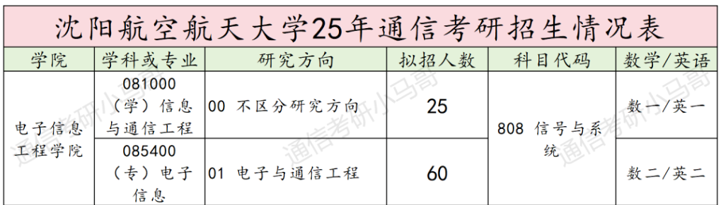 沈阳航空航天大学电子信息工程学院有两个专业初试科目为808信号与系统,分别是081000信息与通信工程学硕、085400电子信息专硕。