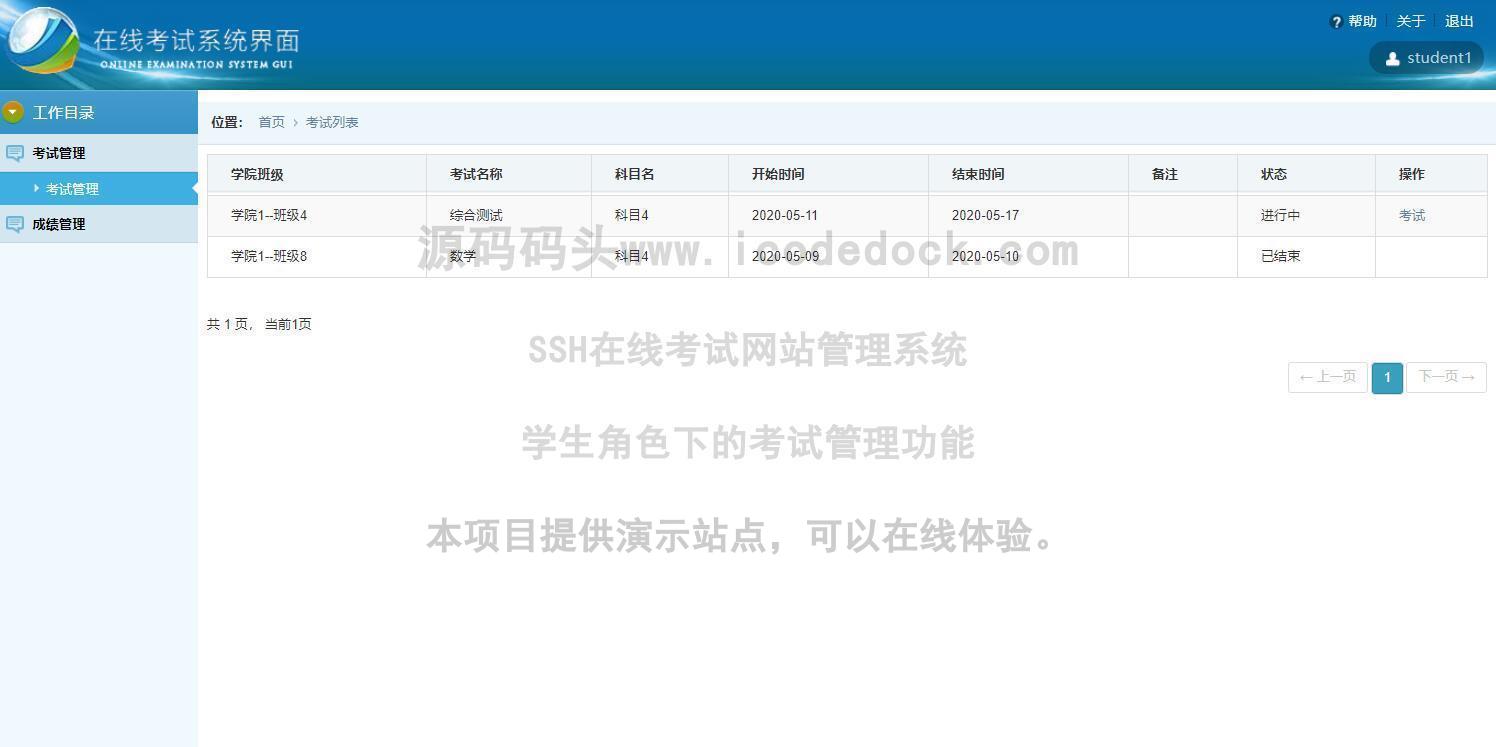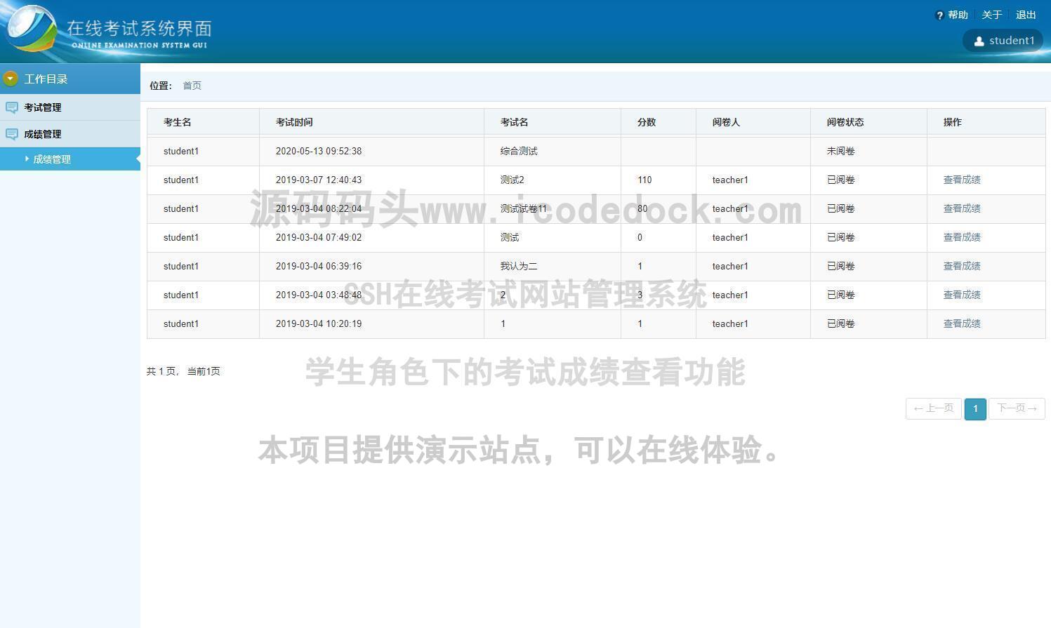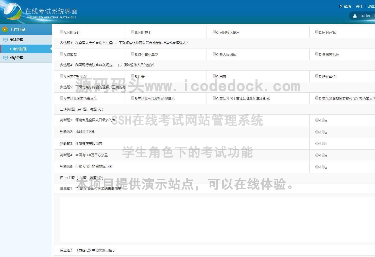 学生角色包含以下功能:学生登录,考试管理,考试,考试成绩查看等功能。