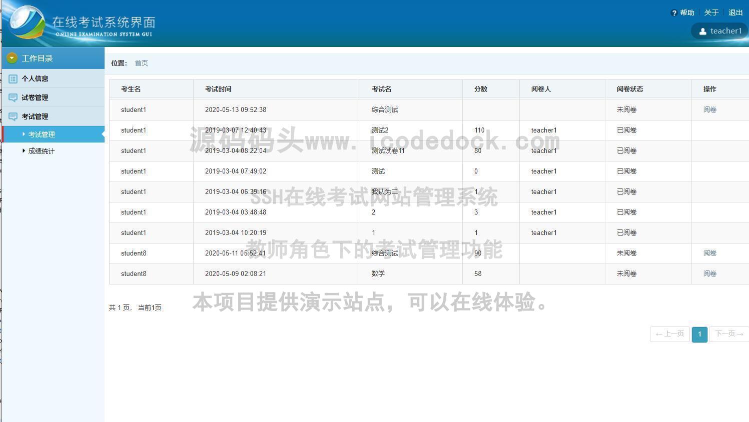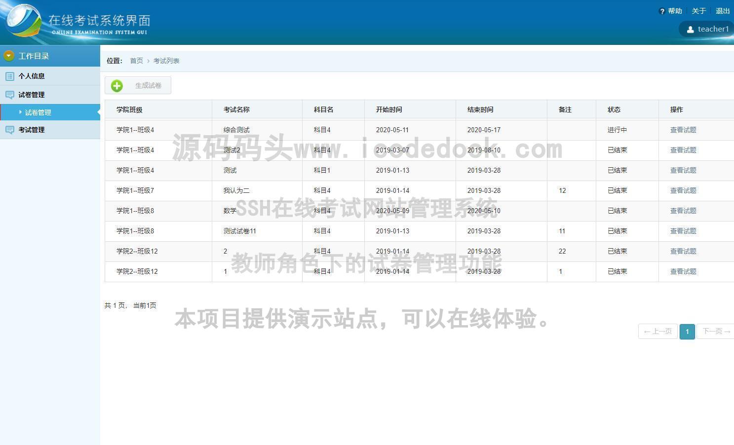 教师角色包含以下功能:教师登录,试卷管理,考试管理等功能。