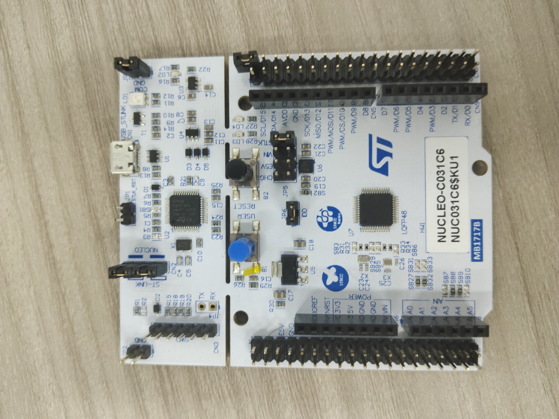 STM32C031C6 试用之点灯和xprintf移植 板载了一个stlink-v2-1,U盘模式支持.bin文件拖放和虚拟串口。48mhz主频,32K+12K的内存资源够用了。12bit ADC最大 2.5 MSps,最多有19个外部通道和2个内部通道。