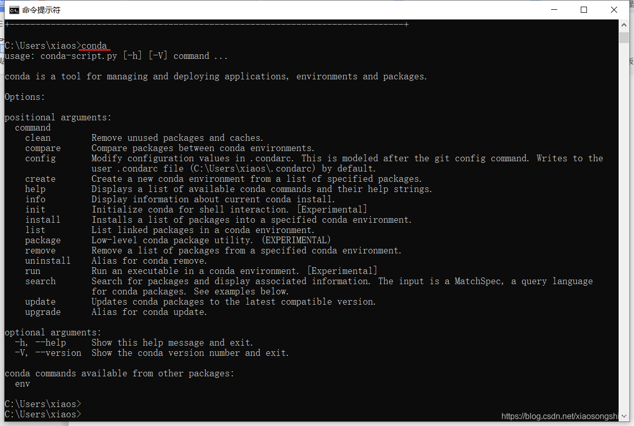 下面测试一下“conda”指令,打开“cmd”,输入“conda”