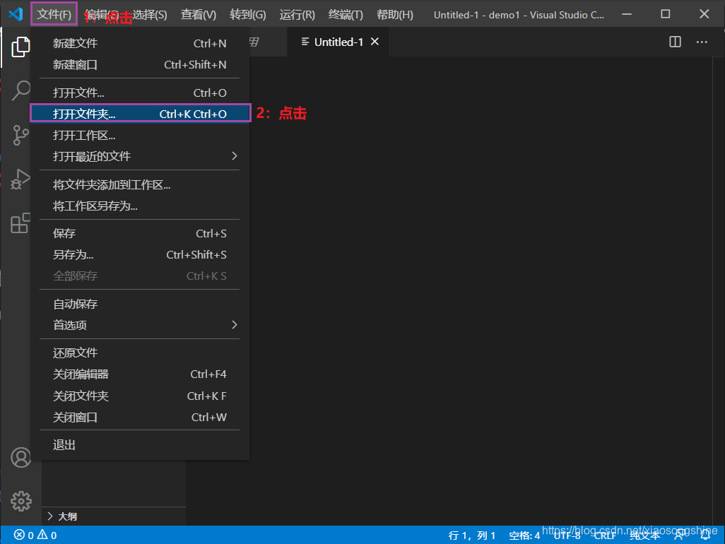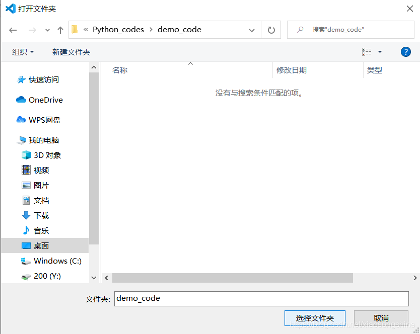VSCode 管理项目文件是通过文件夹来管理的,下面来通过演示来说明下:可以新建一个文件夹,名称叫“demo_code”。然后通过 VSCode “打开文件夹”功能打开这个文件夹: