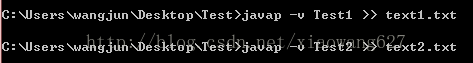 将上述三个.class文件反汇编一下,将反汇编结果重定向到txt文件,反汇编命令为:javap -c Test,如下所示: