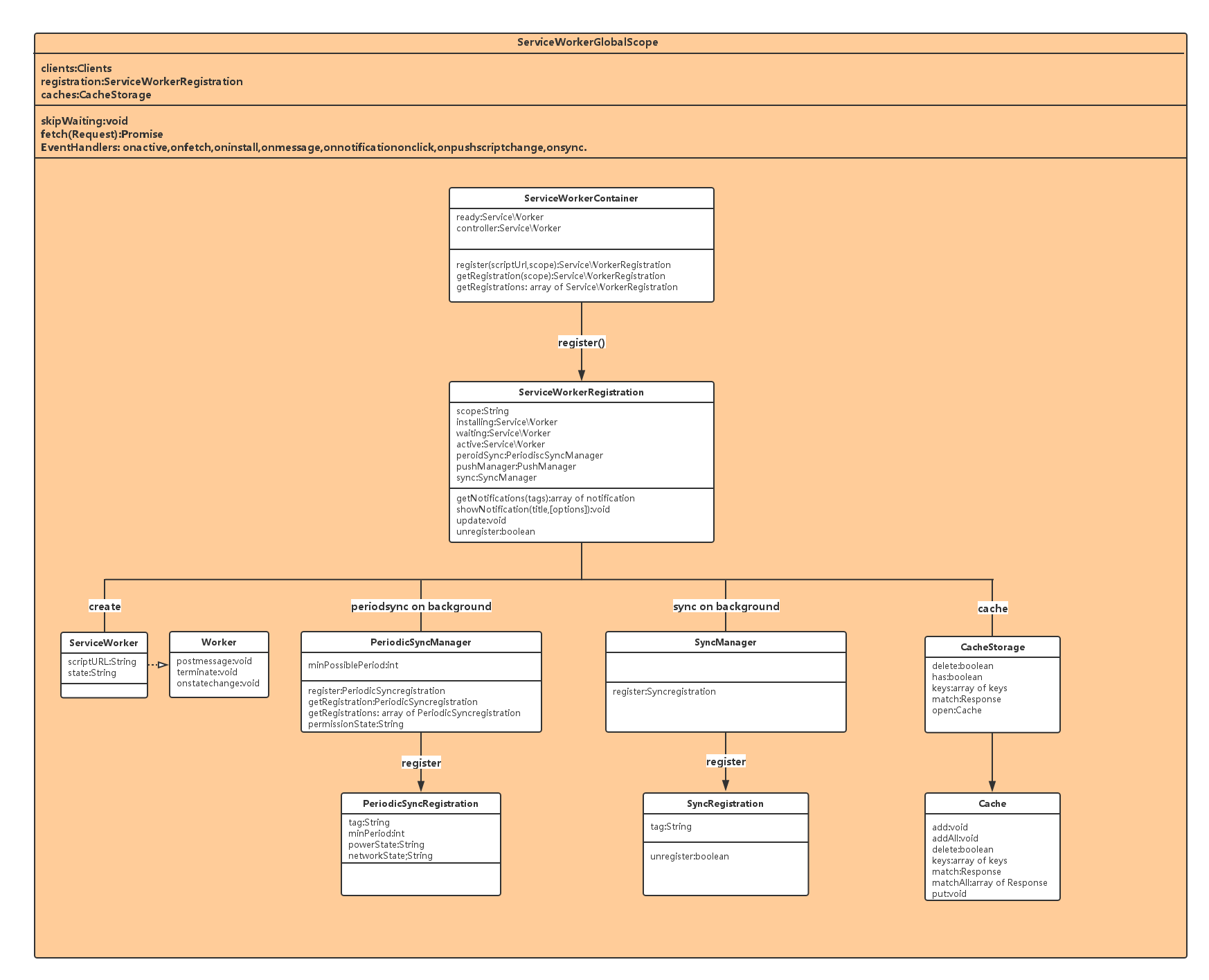 一个ServiceWorker是运行在浏览器后台的基本js脚本,它们不需要一个页面来支撑。它们异步地运行在一个完全独立的上下文环境,不会对主线程造成阻塞。ServiceWorker提供了一个Request/Response的代理机制,通过运行在后台的任务来丰富浏览器的离线体验。