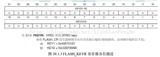 第二个介绍的是FLASH秘钥寄存器:FLASH_KEYR。该寄存器各位描述如图所示: