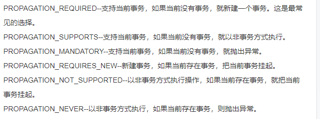 传播行为(PROPERGATION):事务开启和事务结束(包括回滚和提交)
