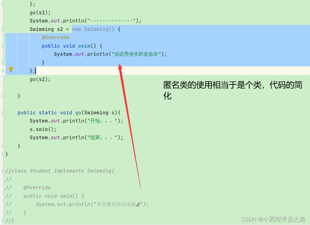 该代码是表示创建内部类对象,用于下面go方法,并重写了swim方法。