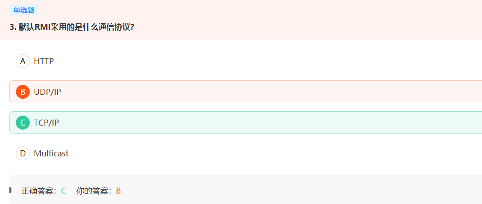 5、最后客户端查找远程对象,并调用远程方法 所以选C