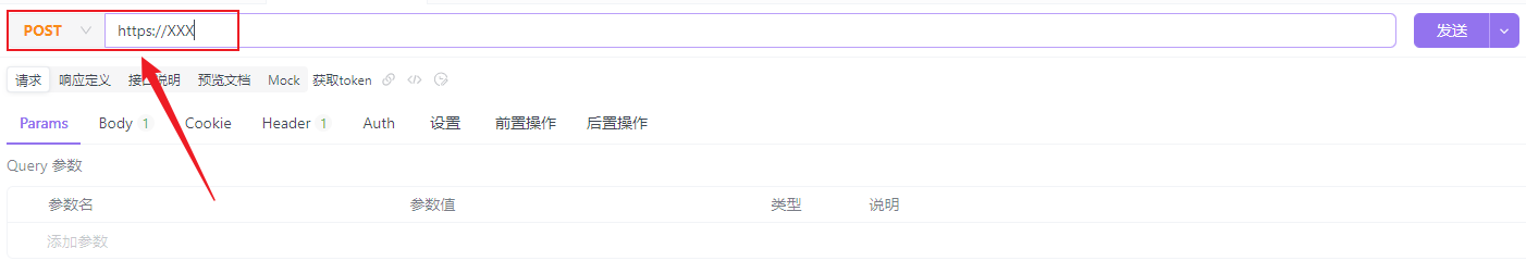 3.在请求体中加入参数以及参数值,记得选择json格式