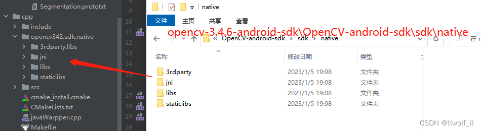 将opencv-3.4.6-android-sdk\OpenCV-android-sdk\sdk\native里面的东西,替换掉opencv342/sdk/native下面的文件。如图