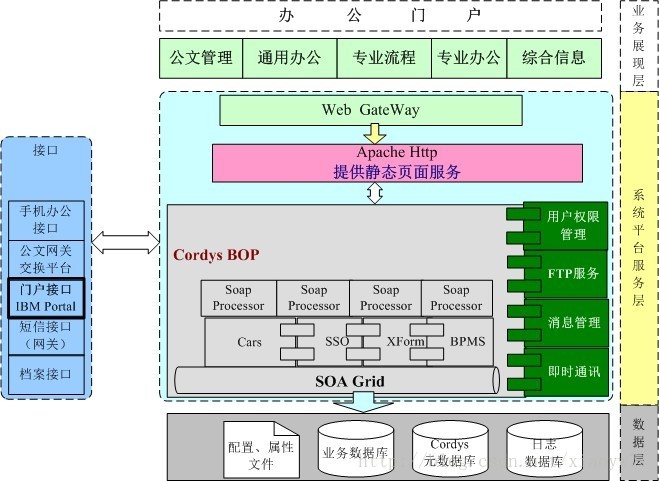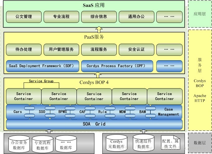 系统架构基于Cordys BOP平台提供云计算解决方案进行设计的。主要特点如下: