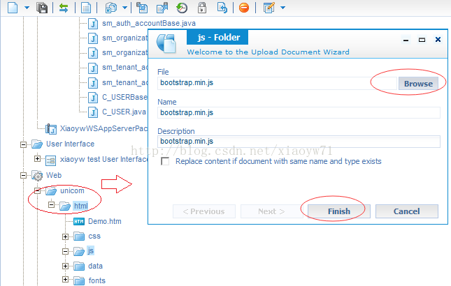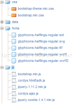按上图在项目中建立文件夹,上传相关资源文档到指定文件中,例如下图把bootstrap.js文件上传到js文件夹中。