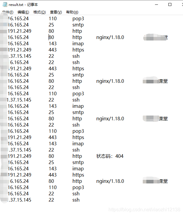 results.append(IP_add+"\t"+Port_num+"\t"+service_name+"\t"+"状态码:"+str(r.status_code)+"\n") #加入结果集