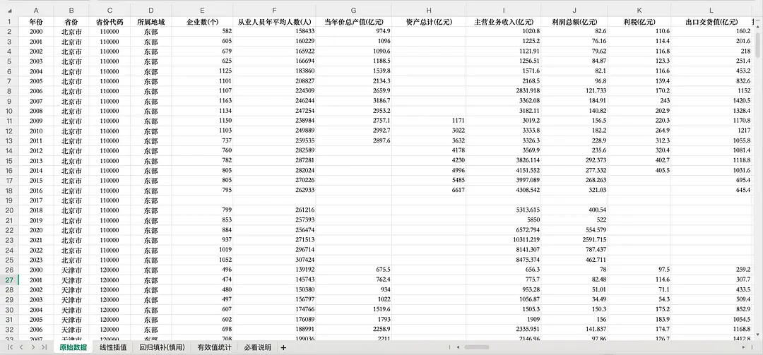 《中国高技术产业统计年鉴》面板数据-有效值统计