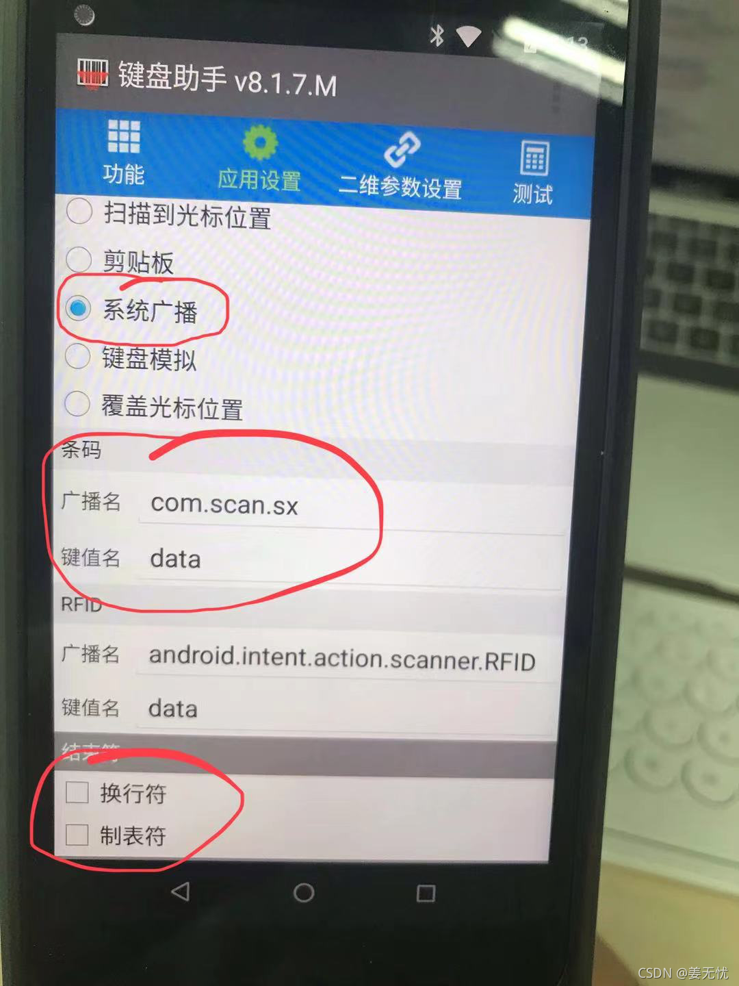 1.打开手持机【键盘助手】,按照下面图片配置进行相关配置。