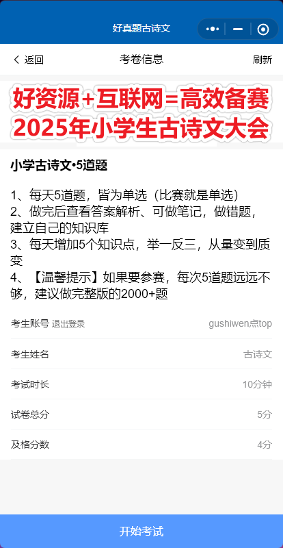 三、独家:全新升级的真题练习和K12古诗文学习网站,让小学古诗文大会备赛和古诗文学习事半功倍