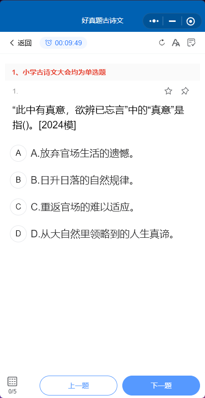 2025年小学生古诗文大会的初选10月19日-26日正式开赛,还有2个月。快来做真题,吃透题目背后的知识点,举一反三不但对比赛有用,对于课内的语文学习也有很大促进。