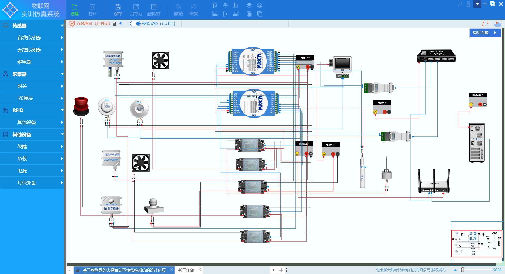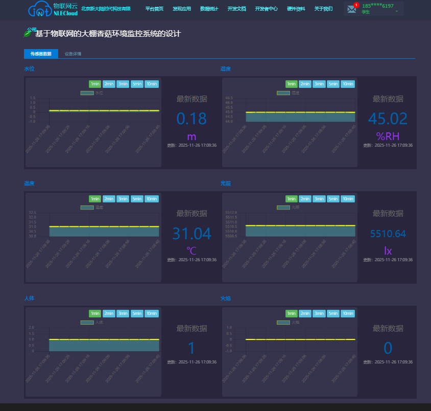 在完成系统硬件搭建与软件开发后,为验证其可靠性、稳定性与实用性,我们进行了全面的测试。测试环境基于新大陆物联网实训仿真平台构建,模拟了一个标准香菇大棚的场景,内部部署了温湿度、光照度和二氧化碳浓度传感器,并通过网络与部署在个人电脑上的新大陆云平台及C#上位机软件进行通信。