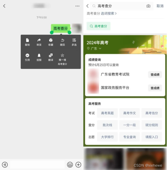 你只需要打开微信,点击搜索框,输入“高考查分”,系统就会为你展示一系列与高考查分相关的服务选项。这里不仅有成绩查询,还有批次线、报考指南等信息,让你一键获取所有需要的信息。