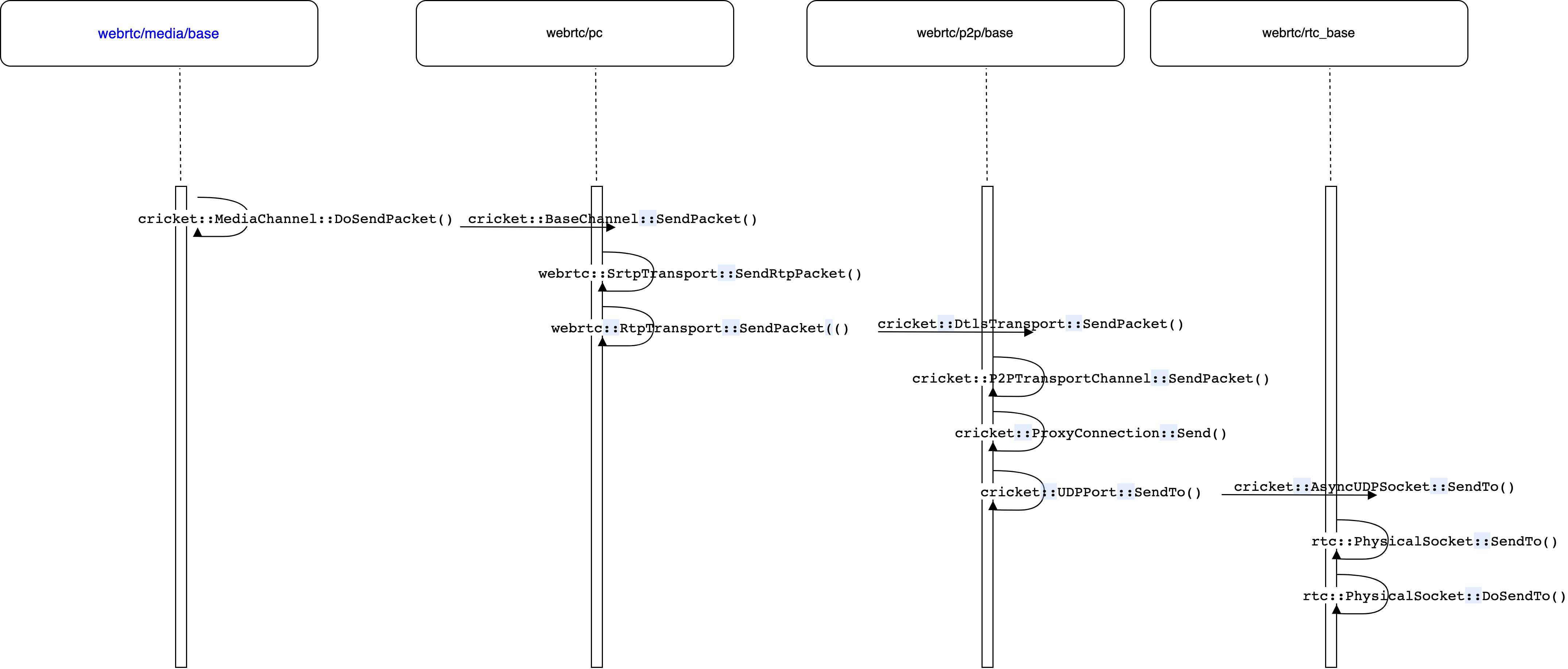 通过cricket::MediaChannel::DoSendPacket()之后,rtp数据包从media层发送到channel层,通过channel层的socket接口发送出去。