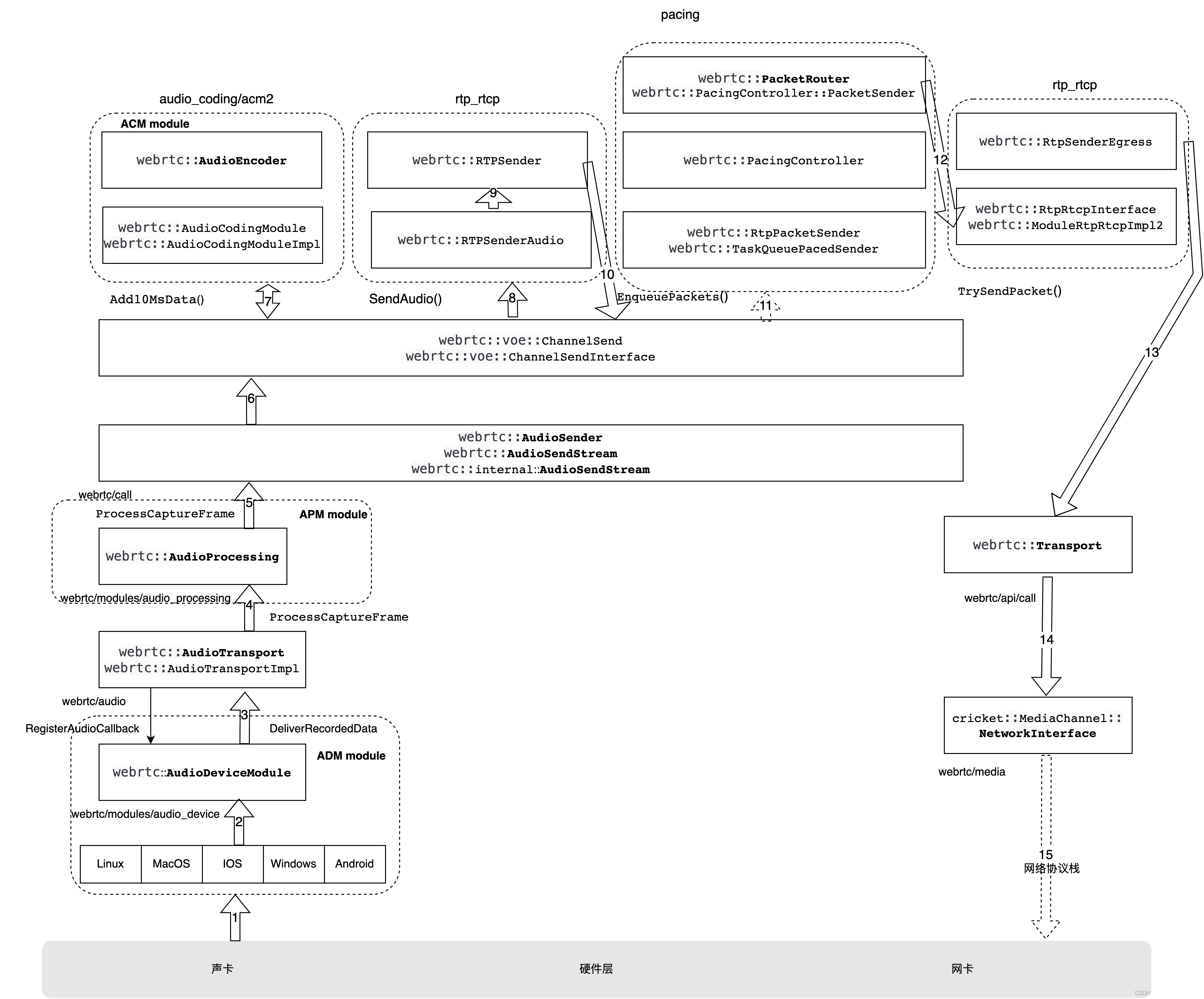 音频发送流程涉及到的模块如下图所示