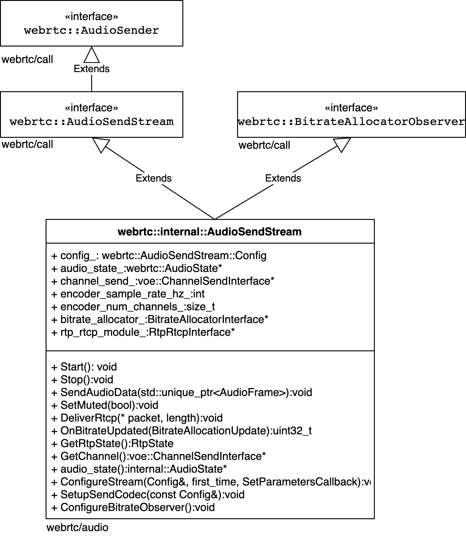 webrtc::AudioSendStream则是实现发送流式音频的接口类,该类主要功能是已经罗列在UML图中的方法中了,主要有以下几点: