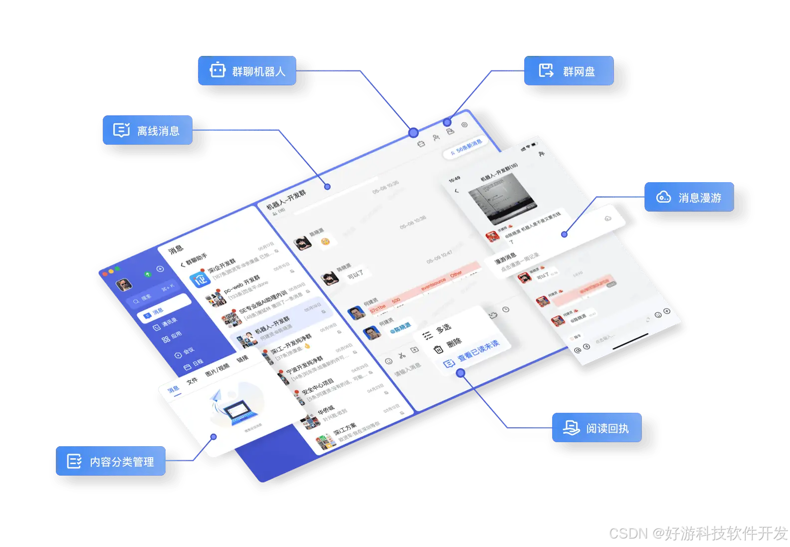 深圳好游科技长期专注于音视频相关的开发,使开发者通过简单集成API,快速实现强大的移动互联网IM和音视频通话、直播功能。IM服务器采用c++开发,支持同时支持UDP、TCP、和Websocket连接,长期稳定,超高并发,不使用第三方SDK。私有化部署方案,不使用第三方云服务器,不需要支付流量费。在场景化方面,深入各行各业,狠抓痛点,第一时间包装相应的场景方案,助力企业解决行业难题。