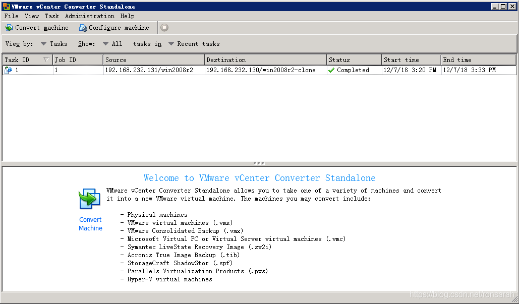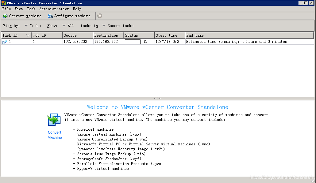打开VMware vCenter Converter Standalone,点击“Convert machine”按钮,如下图: