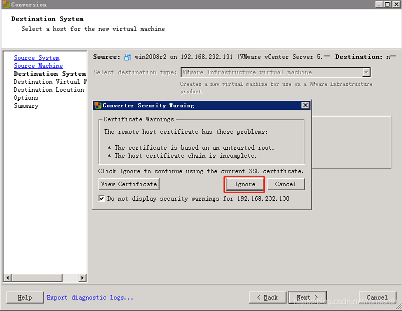 - 确保两套vCenter环境网络能够互通,并且能够让Converter同时访问