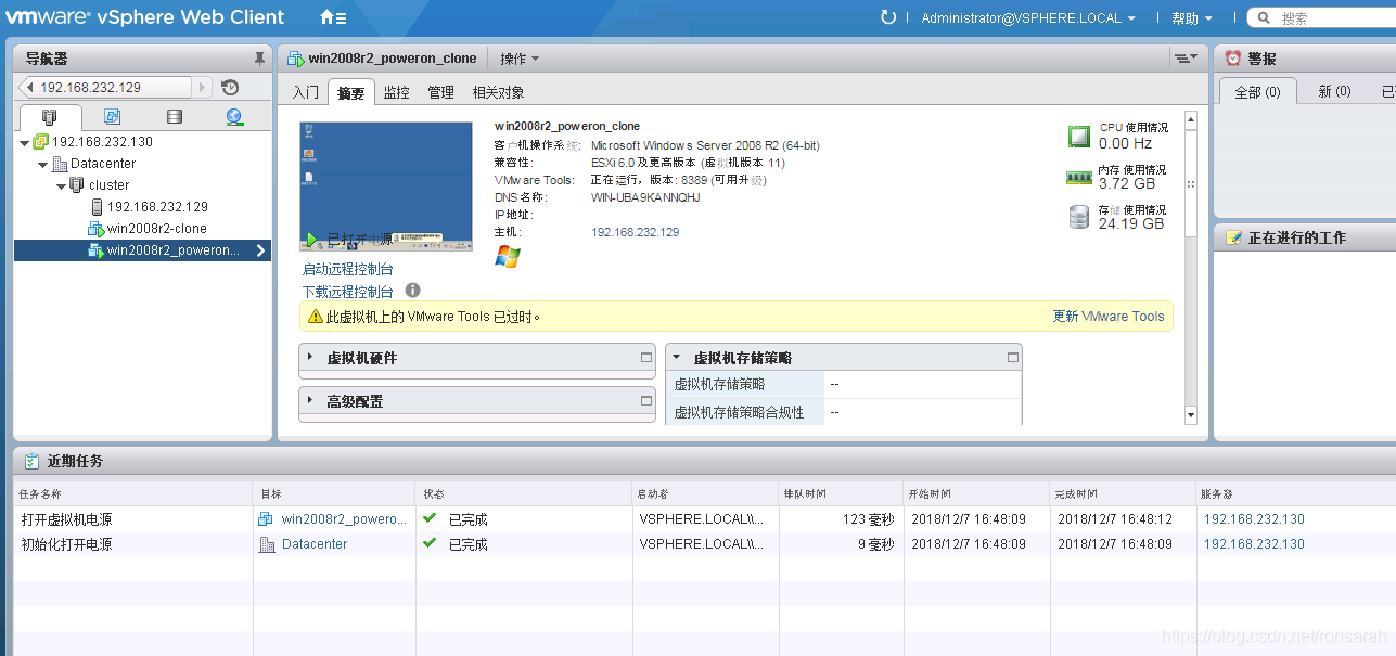 登录vCenter6.0查看,已发现目标虚拟机“win2008r2-clone”,如下图: